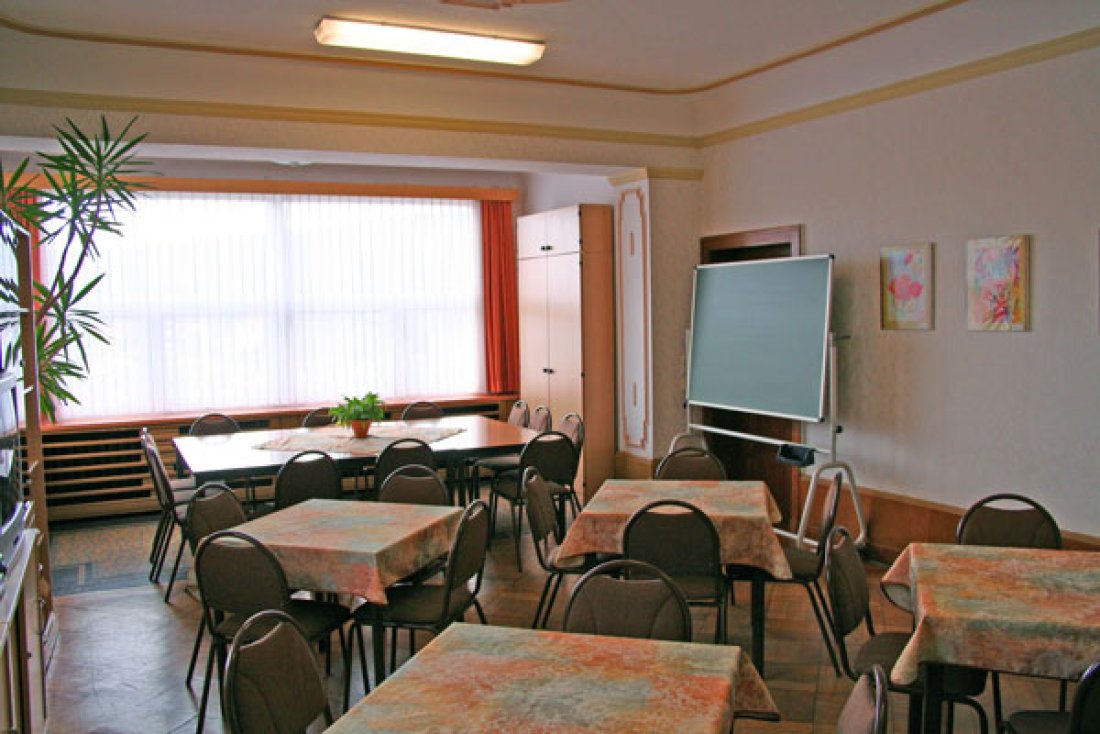 Kaminzimmer, Tischtennisraum, Töpferwerkstatt, Fitnessraum und Seminarraum |